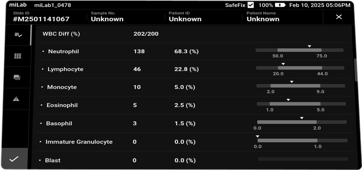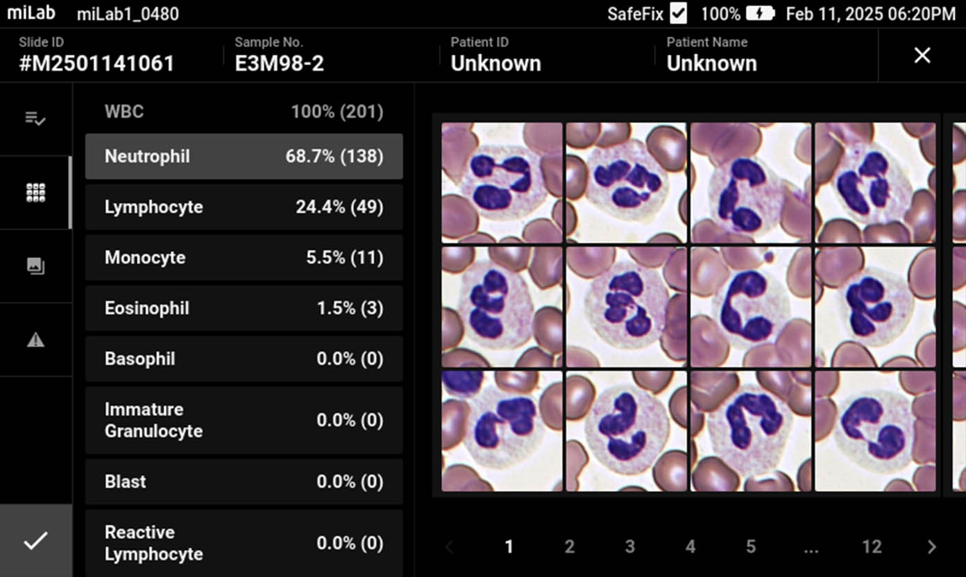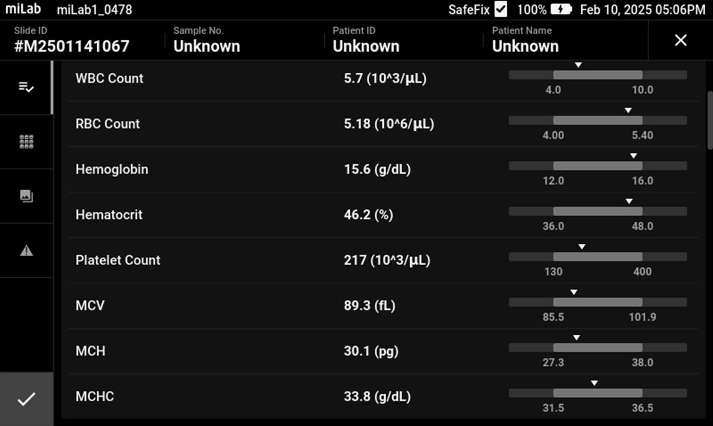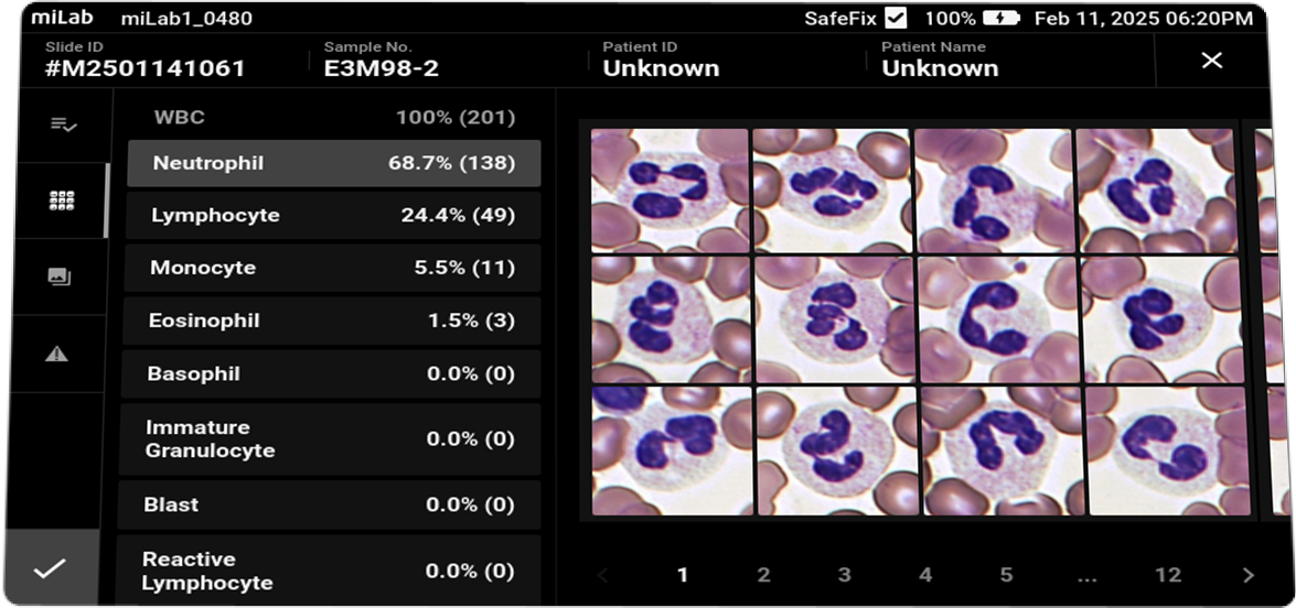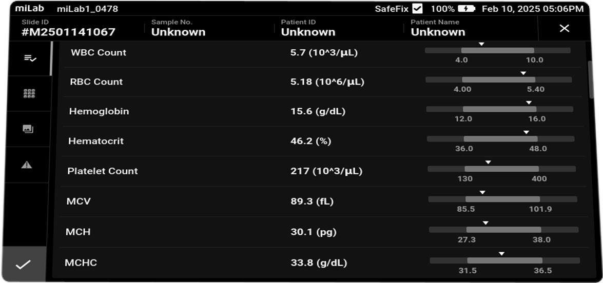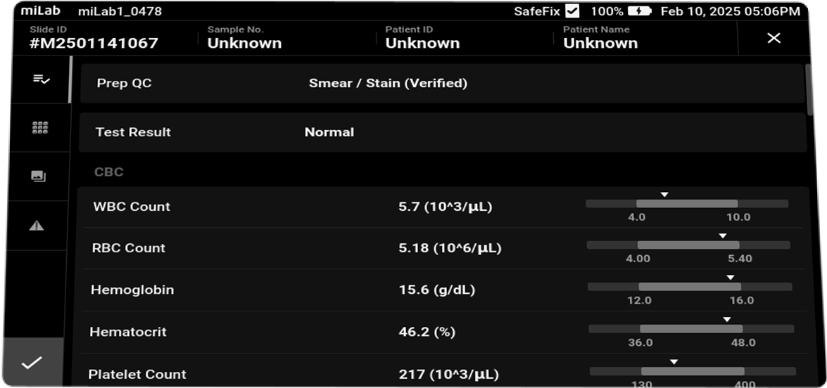 - AI 분석을 통해 CBC 주요 파라미터와 세포 형태별 사전 분류 결과 제공