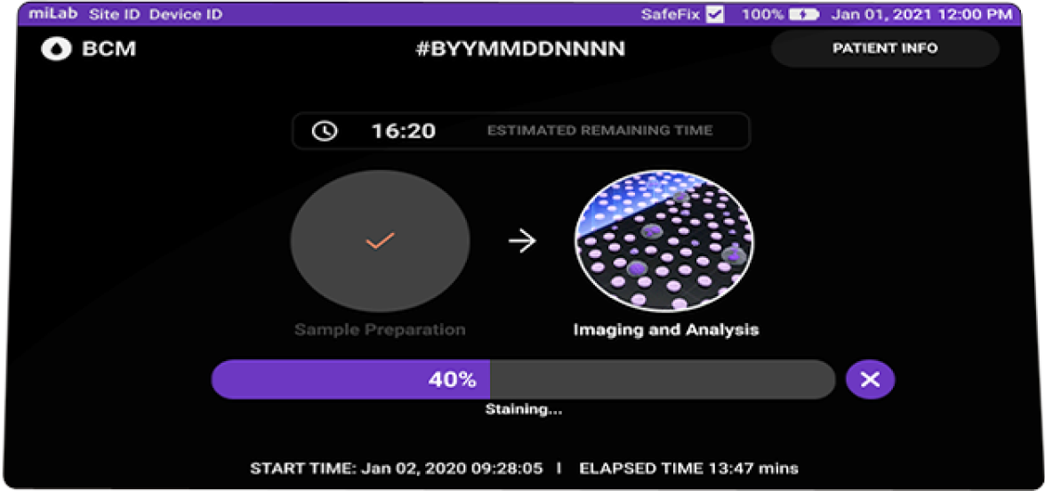 miLab™ BCM은 혈액 분석의 새로운 기준을 제시합니다. 전통적인 혈액 검사와 달리, 이 솔루션은 혈액 도말, 고정, 염색 등 샘플 프렙의 전 과정과 디지털이미징, AI 분석을 활용하여 전혈구검사(CBC) 및 혈구형태검사(Morphology Test)를 완전 자동화해 일관된 결과와 간편한 워크플로우를 제공합니다. 특히, 적은 검체량으로도 고품질의 세포 분석을 구현하여 최적화된 솔루션을 제공합니다.